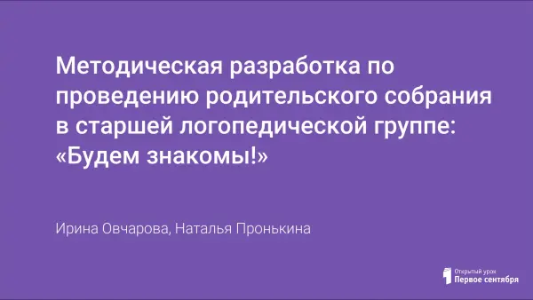 Методическая разработка по проведению родительского собрания в старшей логопедической группе: «Будем знакомы!»