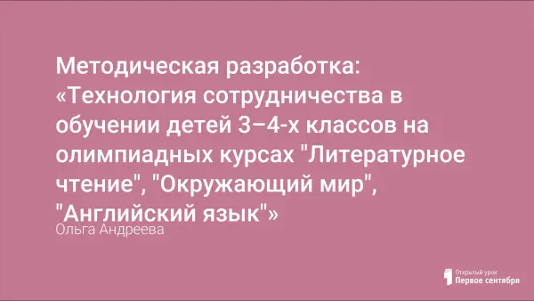 Цель работы: создание методики для применения технологии сотрудничества и эффективного обучения детей 3-4-х классов на олимпиадных курсах "Литературное чтение", "Окружающий мир" и "Английский язык".