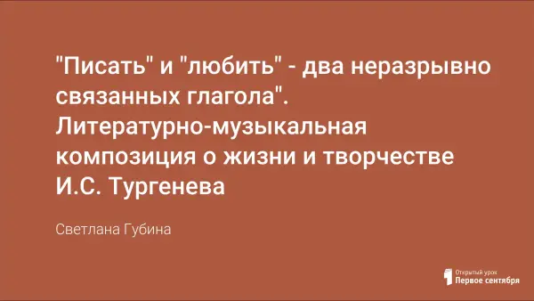 Тургеневское слово и сейчас вдохновляет на творчество. И озаренные, вдохновленные этим словом, мы подготовили литературно-музыкальную композицию, которая поможет вам чуть глубже понять этого писателя, его личность, его творчество, его любовь, его судьбу, его эпоху.