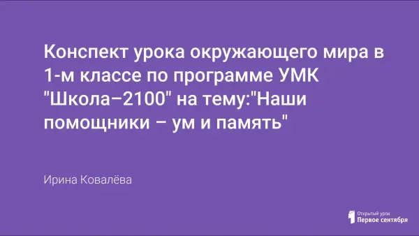 Цели урока: показать роль памяти и ума в понимании окружающего мира; развивать умения мысленно воспроизводить образ подобного предмета, явления; прививать желание и стремление к расширению своих познаний окружающего мира.