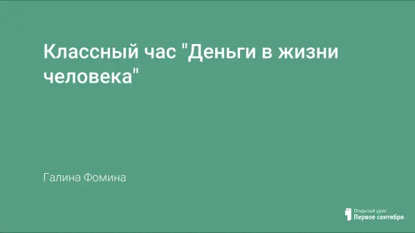 Классный час построен на основе презентации «Деньги в жизни человека». В рамках мероприятия проходит дискуссия на тему «Роль денег в современном обществе». При подготовке проводится анкетирование родителей по вопросу «Деньги как средство поощрения и наказания».