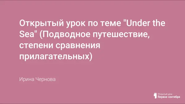 Цель урока: создание условий для формирования и развития УУД учащихся средствами иностранного языка в рамках темы «Under the sea». Задачи урока: