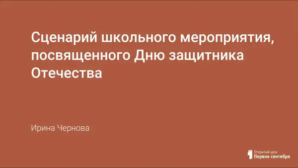 Данный сценарий посвящен празднику, который обязательно отмечается в школе каждый год, Дню защитника Отечества. В данном материале рассказывается об армии нашей страны в различные исторические эпохи: Гражданская война, Великая Отечественная, Афганская, Чеченская, и, наконец, СВО. В предлагаемом сценарии есть и немного истории, и песни, и стихи, и танцы. Очень органично смотрятся на сцене учащиеся, одетые в костюмы военных разных времен существования нашей армии.