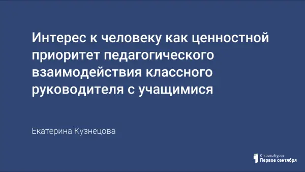 Статья посвящена актуализации проблемы аксиологической направленности на человека, педагогического взаимодействия классного руководителя с учащимися; привлечению внимания к проблеме построения межличностных отношений на основе гуманности, взаимоуважения, стремления к взаимопониманию и сотрудничеству, интереса к человеку и неравнодушного отношения к его жизни.