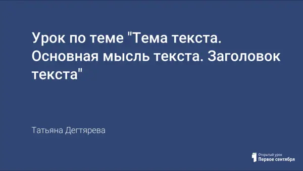 Урок закрепляет умения учащихся работать с текстом: определять основную мысль текста, тему, подбирать заголовки, выделять главное, обобщать.