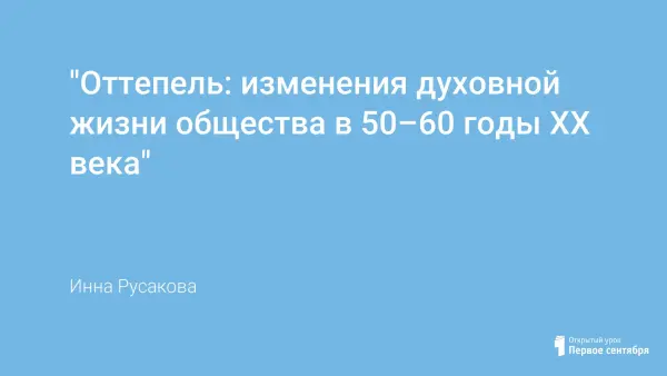 Урок для учащихся 11-го класса по истории России проводится в процессе изучения исторического периода "Десятилетие реформ 1954–1964 годов". Урок тесно связан с вопросами периода, подтверждая проводимые изменения во всех сферах общества, в том числе и в области культуры, одновременно показывая их противоречивость. Учитывая, что в 9-м классе учащиеся уже изучали данную тему, урок построен на основе работы с документом и сообщения учащегося, это позволяет разобрать основные моменты темы, правильно расставить акценты. Заключительное эссе позволяет увидеть личное отношение к периоду учащихся.
