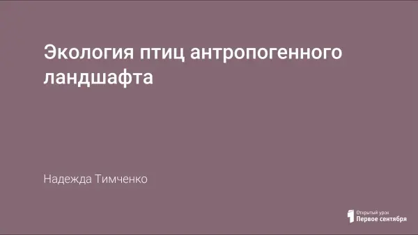 В ходе урока учащиеся знакомятся с птицами антропогенного ландшафта, раскрываются биологические особенности, особенности "поведения", наследственные изменения, возникшие в процессе эволюции под воздействием антропогенного фактора.