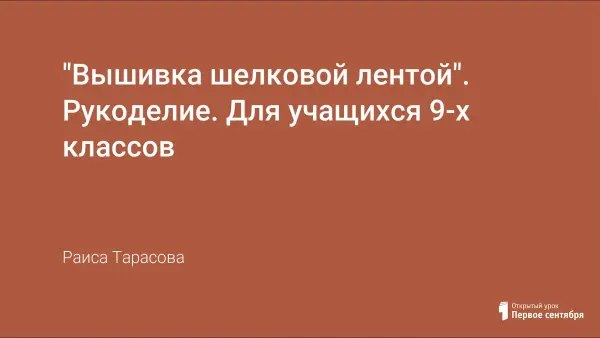 В данной программе включены новые для учащихся знания, не содержащиеся в базовых программах. Овладение учащимися умениями по вышивке шелковой лентой обогатит их духовно, подготовит к конкуренции на рынке труда и профессий, сформирует технологическую и художественную культуру. Выполненные ребятами работы - панно, декоративная подушка, могут быть использованы для оформления интерьера дома, школы или коммерческих целей. Итоговое занятие - это организация и проведение в кабинете труда выставки работ учащихся, награждение лучших, присвоение звания "Мастер золотые руки".