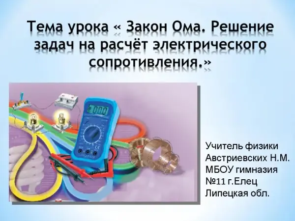 Урок систематизирует и обобщает умения и навыки учащихся при изучении закона Ома и расчета электрического сопротивления, умение добывать и применять знания, формирует навыки самообразования при решении проблемных и экспериментальных задач.