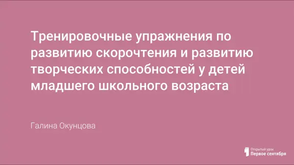Представлен конспект тренировочного упражнения "Развитие скорочтения у детей младшего школьного возраста".