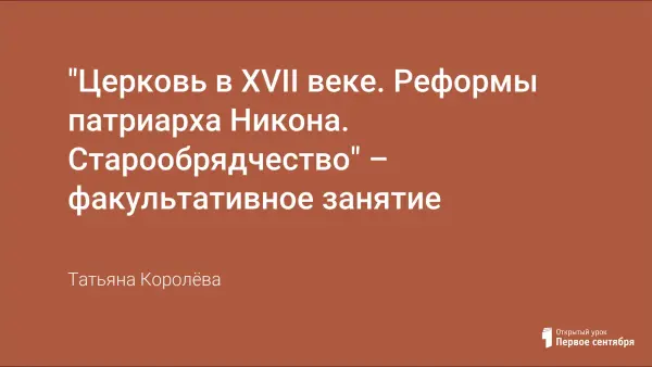 Факультативное занятие, помогающее учащимся раскрыть причины реформ Никона, развивающее умение анализировать и оперировать полученными знаниями, самостоятельно извлекая их из исторических источников.