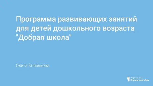 Представленные занятия являются продолжением программы "Добрая школа" (начало опубликовано в 2007-2008 учебном году). Они направлены на выравнивание стартовых возможностей детей при поступлении в 1-й класс. В ходе проведения занятий активно используется оборудование сенсорной комнаты.