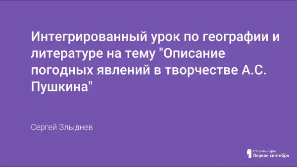В данной работе я попытался разобрать стихотворения А.С. Пушкина, в которых доступным и красочным языком описаны и времена года, и различные типы погоды, которые изучаются в курсе географии 6–7 классов.