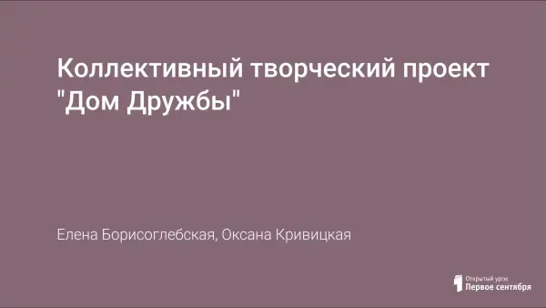В статье описан опыт реализации коллективного творческого проекта "Дом Дружбы" в группе продленного дня.