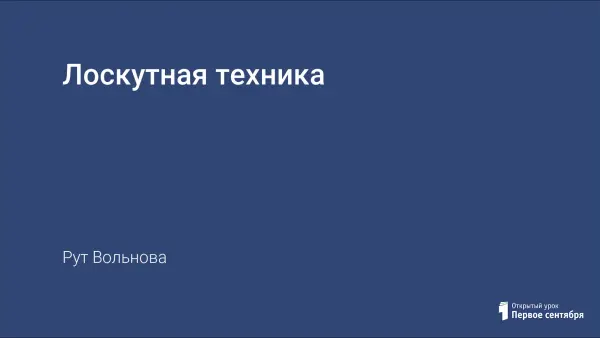 В данной работе рассматриваются элементы лоскутной техники, которые можно с легкостью применять на уроках технологии, изготавливая простые и красивые детали интерьера. Лоскутная техника проста и доступна каждой женщине, так как для исполнения изделий в стиле лоскутной техники не нужны какие-то особенные инструменты, материалы, навыки и умения. Также в статье приводятся некоторые узоры, расположенные в порядке возрастания сложности. Схемы сборки помогут вам составить лоскутные фрагменты.