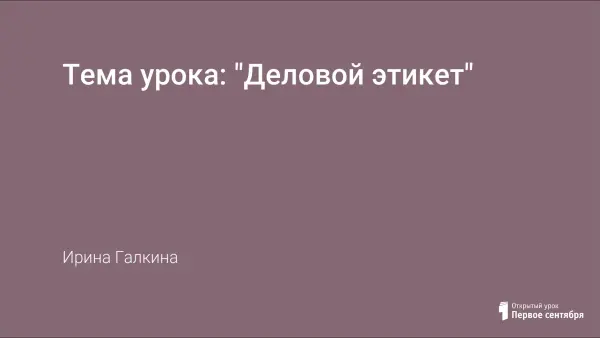 Тема урока: "Деловой этикет"