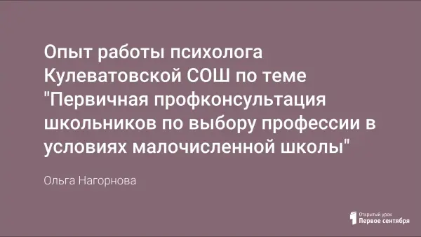 Профессия – школьный психолог. Работая в этом направлении и наблюдая за учащимися, видно, что большинство учащихся не подготовлены к выбору профессии. Представления о выбранной профессии у большинства носят поверхностный характер и находятся на уровне житейских знаний, мотивация выбора слабо или почти не аргументирована, самооценка учащихся чаще всего неадекватная. Профориентация в общеобразовательной школе выступает составной частью всего учебно-воспитательного процесса. Задача школьной психологической службы – подготовить учащихся к саморазвитию и реализации своих возможностей в жизни.