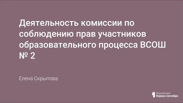 В статье описывается опыт работы комиссии по соблюдению прав участников образовательного процесса. Она занимается правовым просвещением подрастающего поколения, помогает в разрешении конфликтных ситуаций.