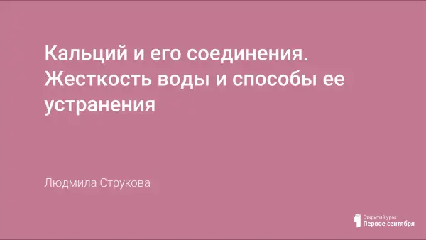 В ходе урока у учащихся формируется представление о кальции как химическом элементе и простом веществе, его свойствах, образуемых соединениях. Учащиеся знакомятся с понятием «жесткость воды” и способами её устранения.