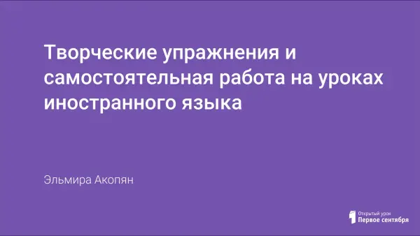 Предстапвлены творческие упражнения и самостоятельная работа на уроках иностранного языка. В работе применяются такие приеме обучения, которые способствуют поддержанию интереса у учащихся к иностранному языку, помогают вовлечь в иноязычную речевую деятельность всех школьников, повышают эффективность урока.