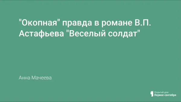 Урок по роману В.П. Астафьева «Веселый солдат» можно использовать как урок внеклассного чтения в 9-м классе при изучении темы «Герои и проблемы современной литературы» по программе любого автора; в 11-м классе (профильный и базовый уровни) при изучении темы «Современная литература»; как занятие по теме «Военная тема в современной литературе» элективного курса «Современная русская литература» под редакцией проф. Б.А. Ланина.