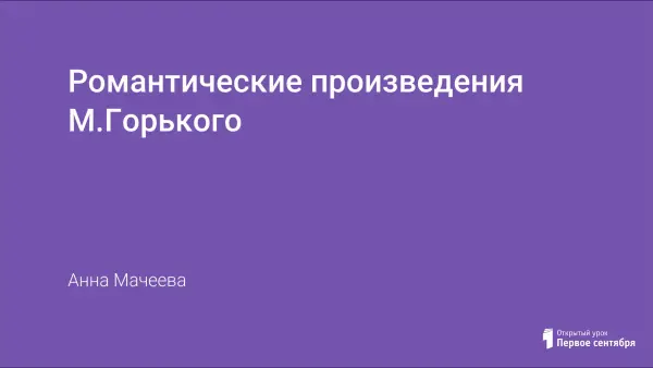 Цель урока: расширить представления учащихся о романтизме; учить анализировать романтические произведения; проследить, как раскрывается замысел М.Горького в композиции рассказов "Старуха Изергиль", "Макар Чудра"; учить общаться: диалог, монолог, рассуждение; формировать личностное восприятие произведений и его героев.