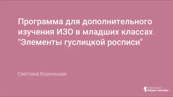 Программа для дополнительного изучения ИЗО в младших классах "Элементы гуслицкой росписи"