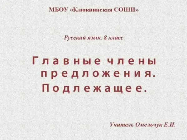 Урок русского языка по теме "Главные члены предложения. Подлежащее". 8-й класс