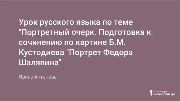 Цели и задачи: углубление понятия о жанре портретного очерка, строении портретного очерка; формирование умения использовать дополнительный материал при подготовке к домашнему сочинению; редактировать и создавать свой текст, используя составленный план; воспитывать чувство прекрасного.