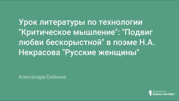На этом уроке мы должны рассмотреть не только определение слова «подвиг», но и рассмотреть понятие «духовный подвиг», «подвиг во имя любви». Презентация позволит увидеть героинь Некрасова и других декабристок, их мужей. Беседа по анализу поэмы строится с обязательным цитированием текста, выразительным чтением отрывков. В конце урока необходимо подвести учеников к мысли о героизме русских женщин "вообще", во все времена. Этому способствует домашнее задание.