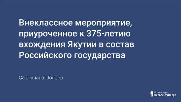 Внеклассное мероприятие, приуроченное к 375-летию вхождения Якутии в состав Российского государства