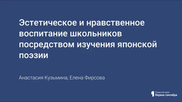 Эстетическое и нравственное воспитание школьников посредством изучения японской поэзии
