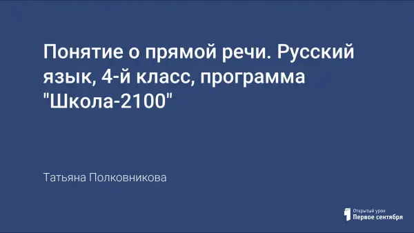 Данный урок открывает тему по русскому языку в 4-м классе «Предложения с прямой речью». В нем дети знакомятся с понятием «Прямая речь» и с конструкцией предложений с прямой речью. Программа «Школа–2100», авторы учебников Бунеев Р.Н. и Бунеева Е.В.