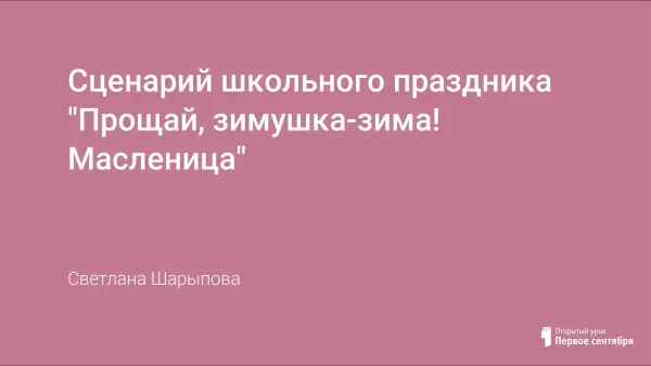 Сценарий праздника для начального и среднего звена школы с целью знакомства с традицией празднования Масленицы; развития творческих способностей учащихся, расширения их познавательных интересов, умения работать в коллективе, создания эмоционального настроя. Праздник начинается в зале, а завершается на улице, где ребята участвуют в соревнованиях; завершается сжиганием Масленицы и чаепитием.