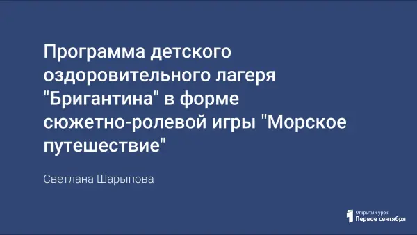 Предлагаемая программа в виде сюжетно-ролевой игры «Морское путешествие» является творческим проектом летнего оздоровительного лагеря «Бригантина» с дневным пребыванием.