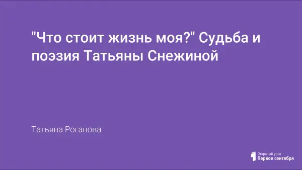 Урок знакомит старшеклассников с Татьяной Снежиной, поэтессой, композитором, автором и исполнителем песен, жизнь которой трагически оборвалась в самый расцвет ее таланта.