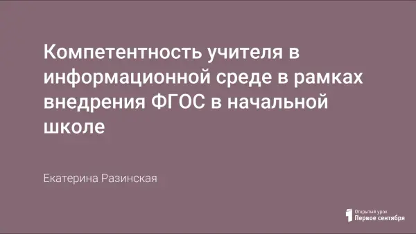 Работа основана на опыте педагога работающего по ФГОС. Представлены приемы и средства обучения через включение ИКТ в образовательный процесс. Отображена работа учителя в личном информационном пространстве.