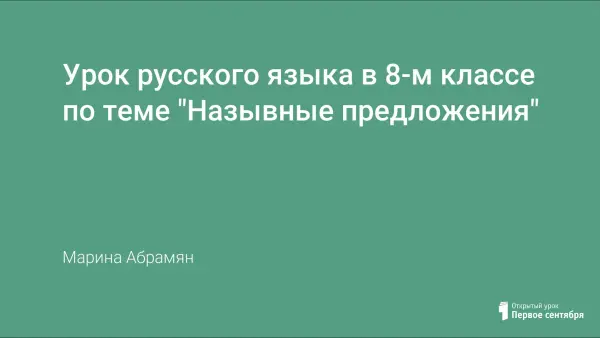 Открытый урок по русскому языку в 8-м классе с использованием ИКТ. На уроке прослеживаются межпредметные связи: русский язык, литература, ИЗО, музыка. Форма урока: урок-путешествие. На уроке учащиеся знакомятся с понятием «назывные предложения», учатся находить назывные предложения, характеризовать, определять роль, выразительно читать.