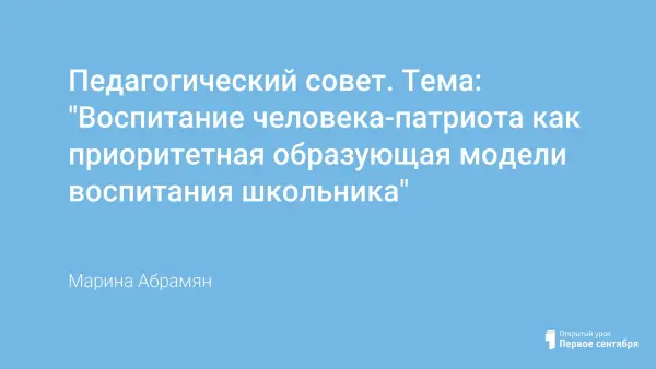 Материалы педагогического совета, проведенного с целью создать систему целенаправленной деятельности педагогического коллектива, самоуправления школьников по формированию у школьников высокого патриотического сознания, готовности к выполнению гражданского и патриотического долга перед Родиной. В статье изложен подробный план педагогического совета, рабочий листок творческой группы, презентация опыта ОУ, афоризмы, пословицы о патриотическому воспитанию.