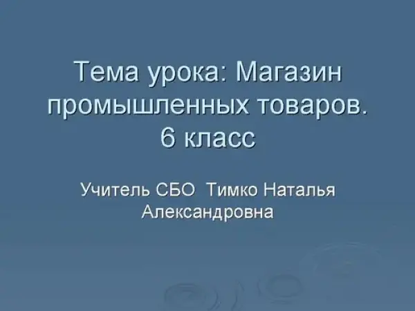 Цель урока: познакомить учащихся с назначением магазина промышленных товаров, дать понятия: гарантия на товар, ассортимент, специализированный магазин, галантерея, парфюмерия. Урок построен с применением презентации, что повышает интерес, активизирует внимание учащихся, освобождает время для закрепления материала.