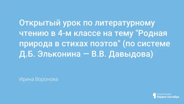 Урок литературного чтения разработан на основе программы «Литература как предмет эстетического цикла» Г.Н.Кудиной, З.Н.Новлянской и проведен в классе, работающем по развивающей системе Эльконина-Давыдова. Данный урок посвящен анализу лирических стихотворений, воспитанию эстетически развитого читателя, способного понять точку зрения автора, воспитанию нравственных ценностей и любви к родной природе.