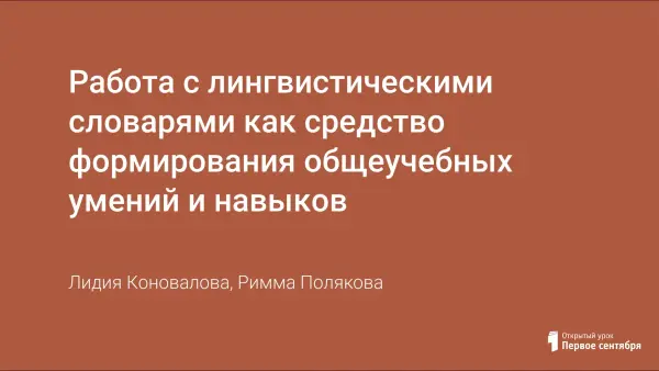 Работа с лингвистическими словарями как средство формирования общеучебных умений и навыков
