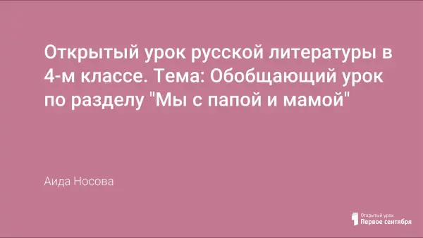 Обобщающий урок русской литературы для 4-го класса по разделу «Мы с мамой и папой». Урок составлен по учебнику «В одном счастливом детстве» Бунеева.
