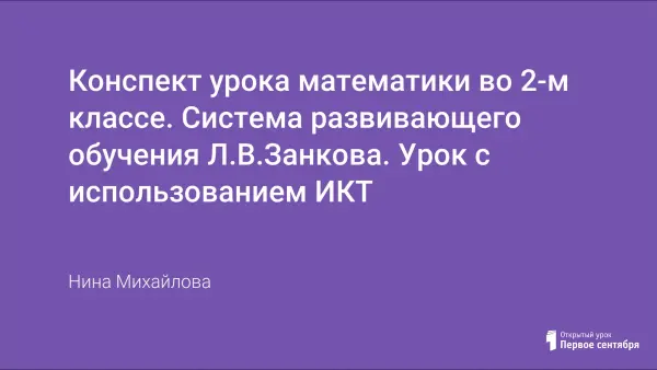 Конспект урока математики во 2-м классе с использованием информационно-коммуникационных технологий по системе развивающего обучения Л.В.Занкова. Включает в себя упражнения на развитие исследовательской деятельности учащихся, навыков самооценки. Урок отвечает принципам здоровьесберегающих образовательных технологий обучения.