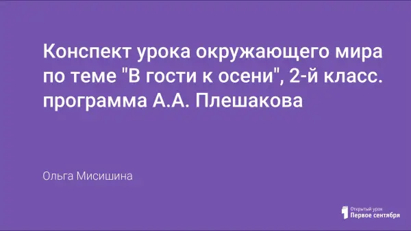 Урок проводится в форме путешествия по осенней стране с использованием групповой формы работы, что позволяет в интересной для детей форме обобщить и систематизировать знания об осенних изменениях в природе, создать условия для воспитания бережного отношения к окружающему миру, формирования норм поведения в природе.