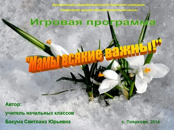 Игровая программа к 8 марта "Мамы разные важны". 2-й класс