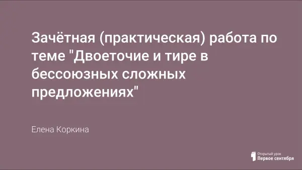 Представлены семь вариантов заданий для зачётной работе в 9-м классе по теме "Двоеточие и тире в бессоюзных сложных предложениях".
