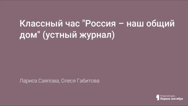 Классный час представлен в виде устного журнала. Дети в интересной форме знакомятся с историей страны, её символами; учатся видеть красоту родного края. Классный час помогает сплотить детский коллектив, воспитывает чувство любви к Родине, патриотизм, бережное отношение к природным богатствам страны.