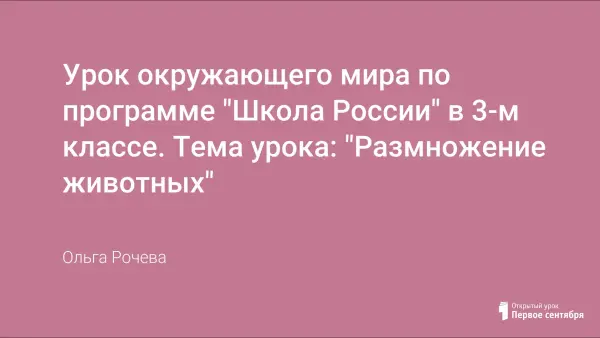 На данном уроке мы знакомимся с развитием и размножением животных: насекомых, рыб, земноводных, пресмыкающихся, птиц; развиваем мышление, учимся сравнивать, обобщать; воспитываем у детей бережное отношение к Природе.