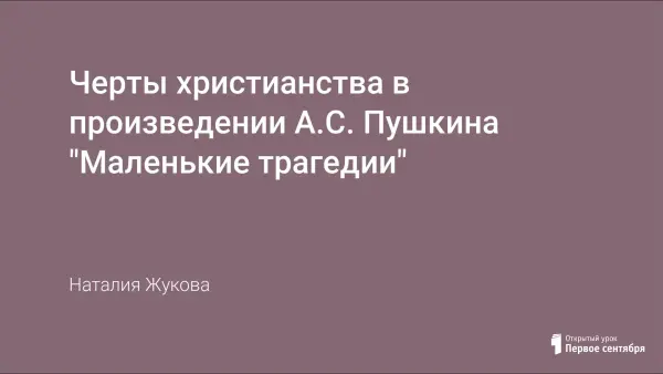Черты христианства в произведении А.С. Пушкина "Маленькие трагедии"
